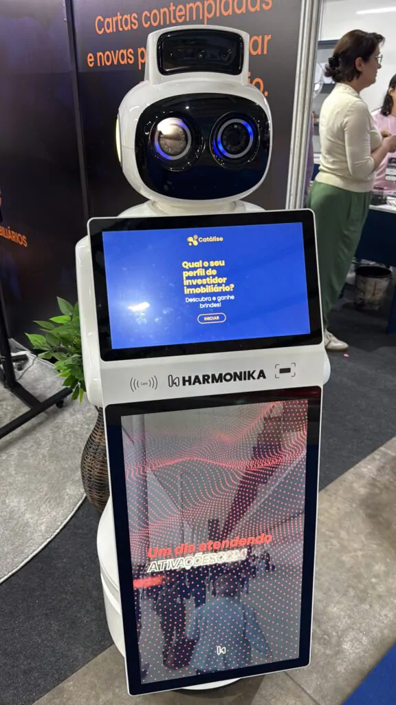 Robô interativo da Catálise na Feira CasaPronta: gamificação para entender o perfil do investidor em tempo real.
